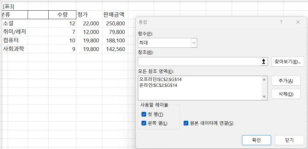-통합 결과 2 X [C2]에서의 값이 (도서번호)로 정답(수량)과 다릅니다.