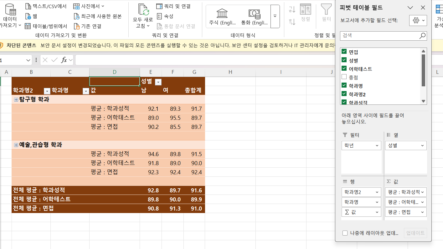 책의 피벗테이블상에서 총점이 없어서 제가 만든 피벗테이블에는 가져오지 않은상태라 85점 이상을 어떻게 적용시켜야 할지 모르겠는데 어떻게 해야하나요