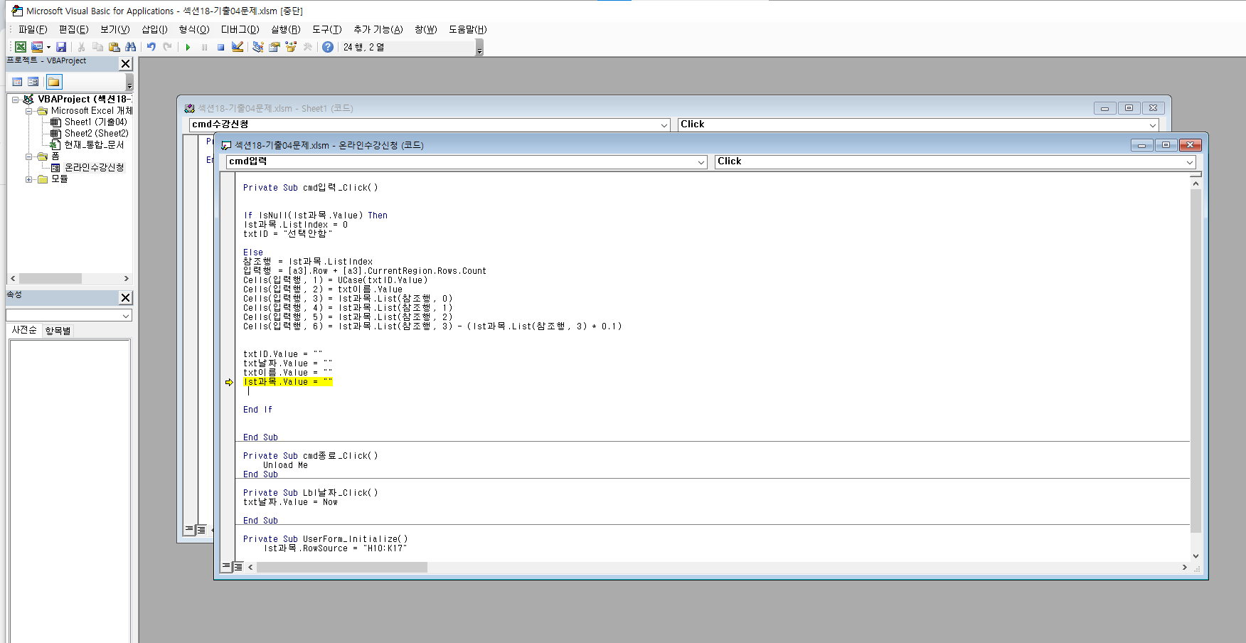 'lst과목'을 입력할 때 첫 글자를 엘(l) 자로 입력한 것이 맞는지 확인해 보세요, 간혹 엘(l) 자를 아이(i) 자로 입력하는 경우가 종종 있습니다.