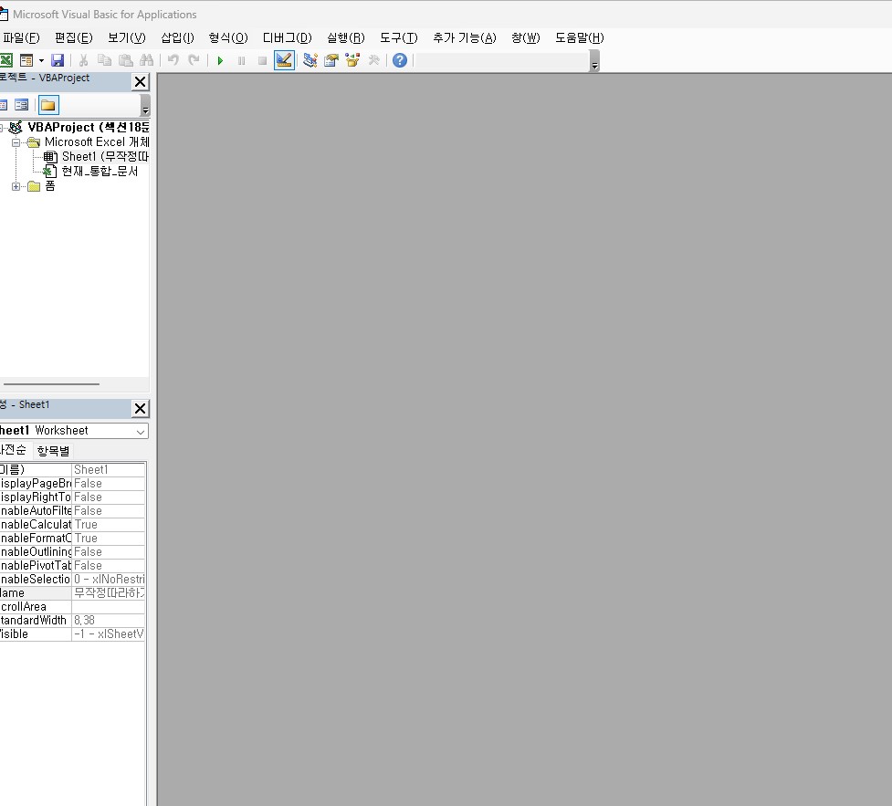 제 프로시저 창은 보시다시피 회색으로 아무것도 입력할 수 없습니다 어떻게 해야하나요