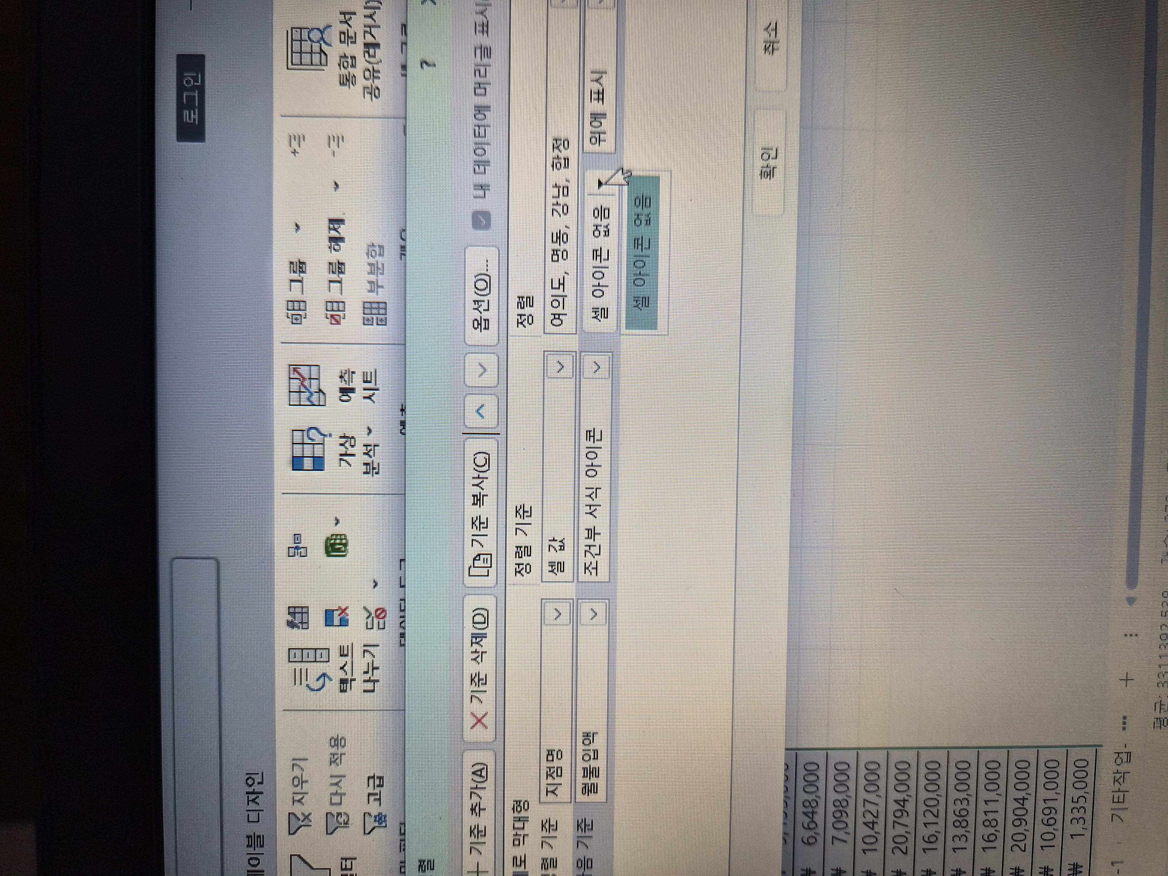 정렬기준누르고 정렬 누르면 셀색없음, 셀아이콘 없음 이라고 나옵니다