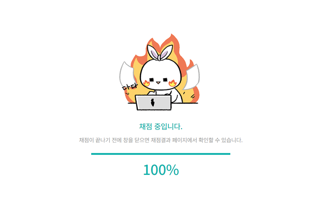엑셀 기본 모의고사 03회를 풀고 채점 시스템에 여러차례 넣어봤는데 100%에서 결과 화면으로 넘어가질 않습니다.