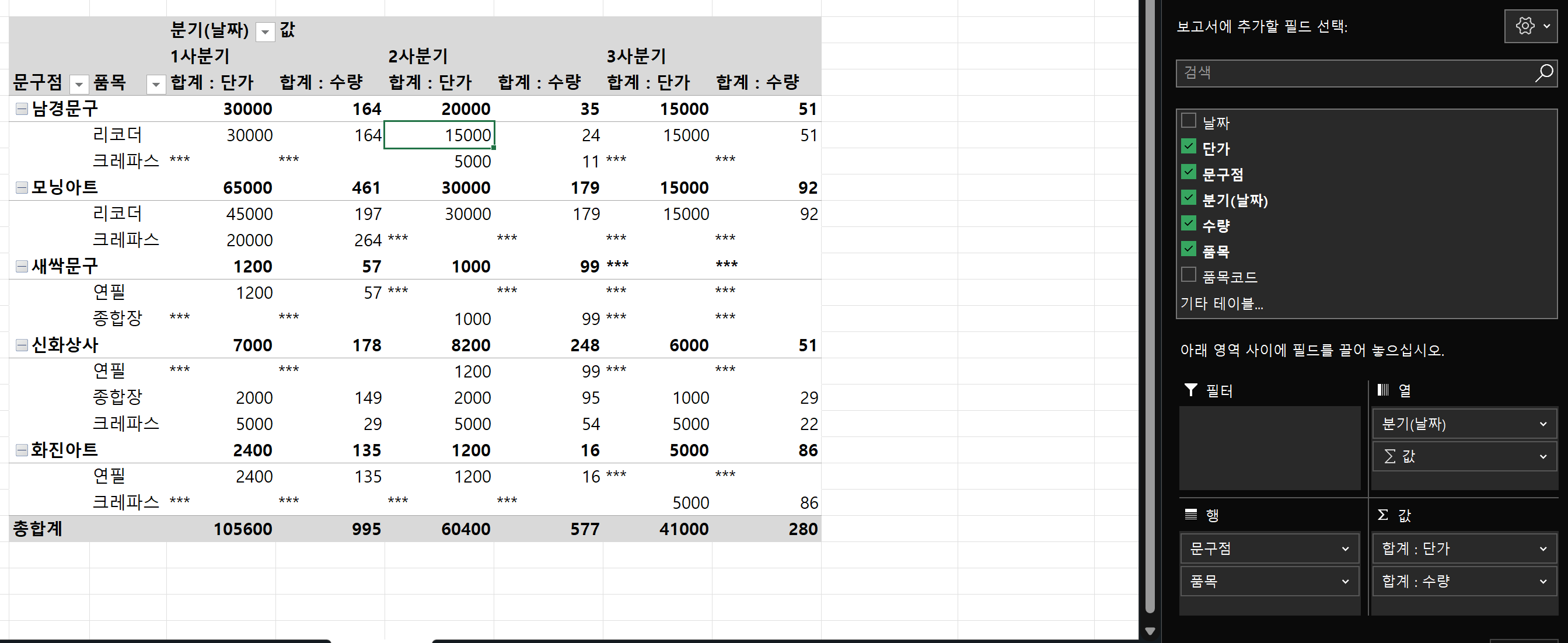 피벗테이블 필드에 그룹 설정 후 이름