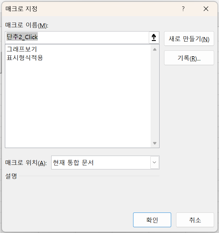 되어 있는데 그럼 파일과 같은 화면이 나올 때도 현재 통합문서로 바꿔줘야 맞는지