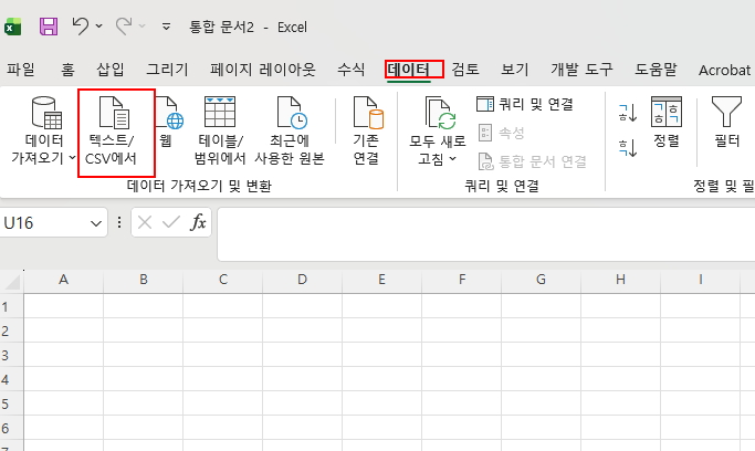 엑셀 2021 메뉴를 보면 [데이터]> [데이터 가져오기 및 변환] 항목에 "텍스트/CSV에서" 메뉴가 있습니다.