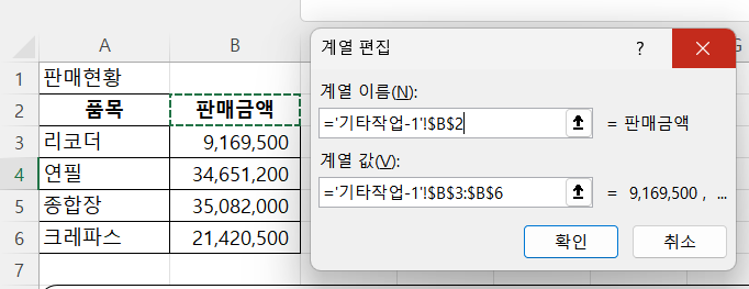 1. 계열 편집에서 계열 값을 다 지우고 문제에서 지시한 부분까지 포함된 전체 범위를 잡고