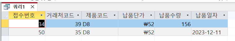 액세스 섹션07 문제5 결과 질문