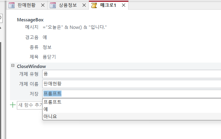 액세스 섹션08 따라하기 <폼닫기> CloseWindow 매크로 "저장" 질문