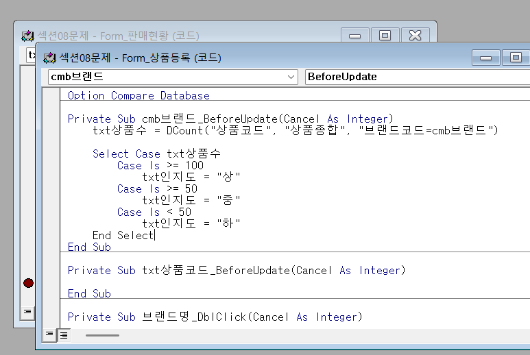액세스 섹션08 문제 1 SELECT ~ CASE 문 질문