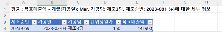 책에서는 위에 "평균: 목표매출액 - 개월(가공일~~~~" 이 부분이 안나오고 아래의 표만 나오던데 이건 왜 이럴까요,,,??