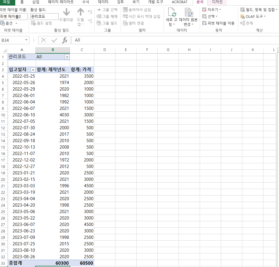외부 데이터 원본으로 <영화보기.csv>파일을 가져올때 '데이터 모델에 이 데이터 추가'를 선택하니 피벗테이블은 작성되었지만 그룹화가 안됩니다. (사진처럼 그룹창 자체가 비활성화 됨)