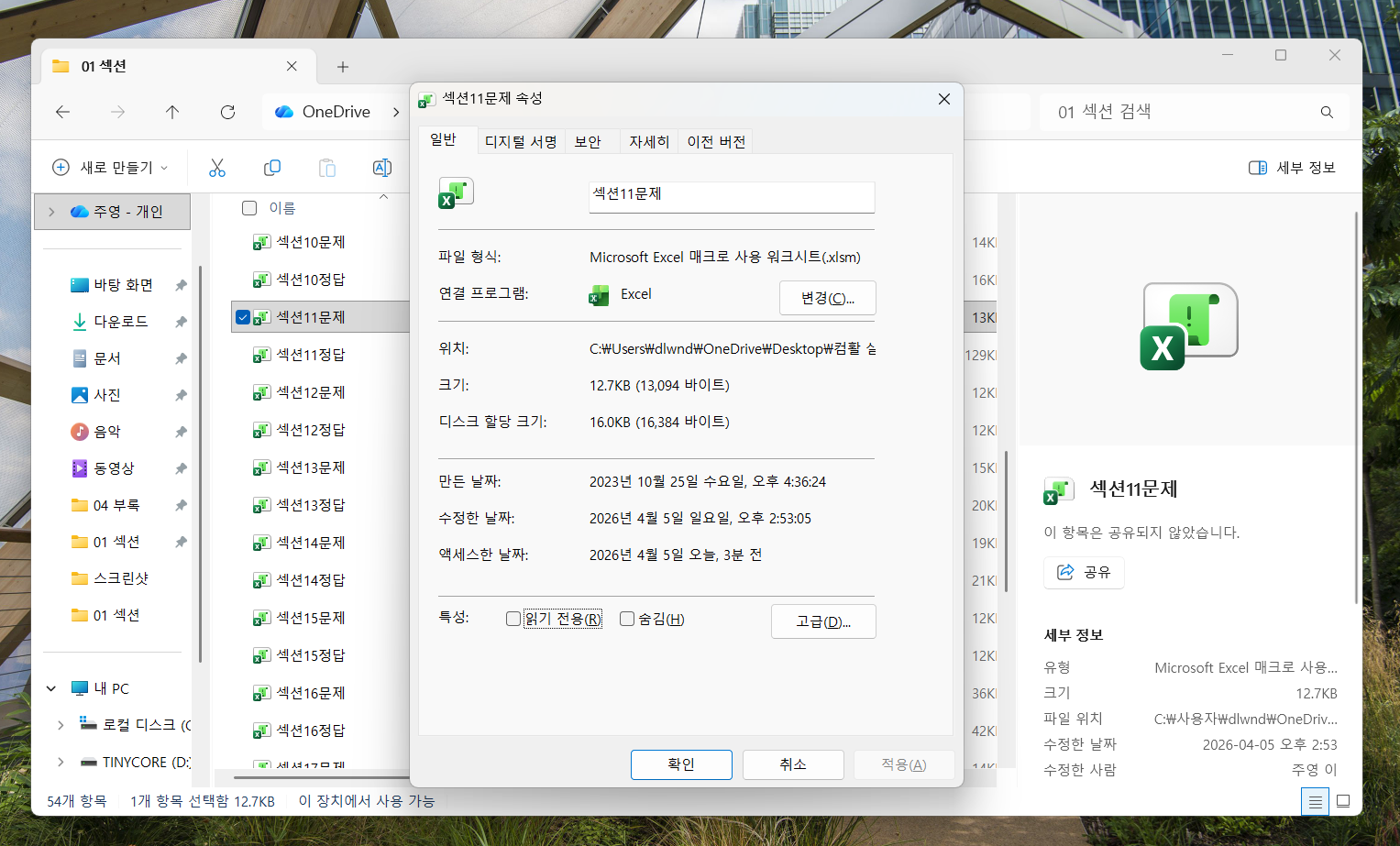 해당 파일을 실행 하기 전에 탐색기 창에서