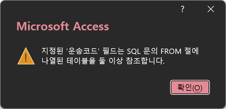 "접수현황출력" 보고서에서 레코드 원본으로 "접수현황" 쿼리를 선택하고, 보고서 보기를 하려고 하면 사진과 같은 오류가 발생합니다. 해결 방법이 있는지 궁금합니다.