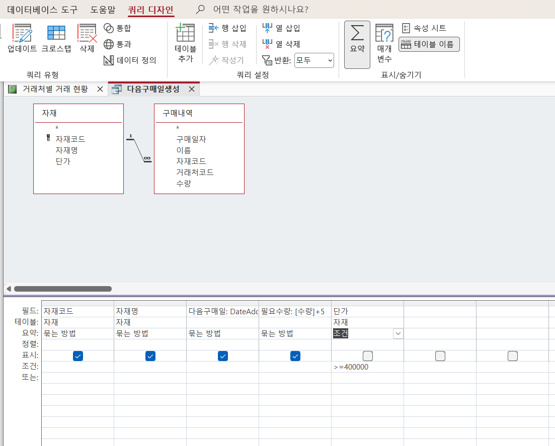 답지에서는 요약-> 단가 필드의 요약행에 조건 클릭없이 바로 했더라구요. 이 문제에서 단가가 조건인데 왜 리본에 요약을 클릭해서 단가 필드에 요약행에서 조건으로 체크를 하지 않았는지 궁금합니다.
