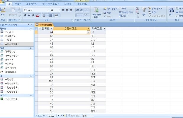 그럼 바운드열을 1로 지정했을때는 필드에 수강생코드가 나와야하고