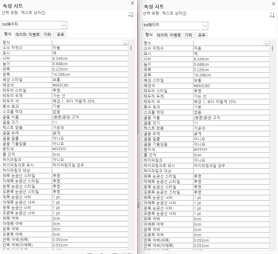 -배경색 속성 X 보고서 속성 [컨트롤 속성 txt페이지]이 없습니다.