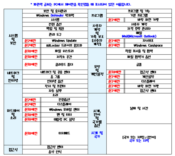 70-71쪽 이번년도 부터 윈도우 10을 기준으로 시험이 바뀌어서 제어판을 실행해 비교하니 책과는 목록 이름이 다르거나 목록 안에 들어가서 보이는 항목들도 다른 것들이 많이 있었습니다. 책에 나와있는 정도만 알면 될까요? 아니면 컴퓨터에서 제어판을 실행히켜 보이는 모든 항목의 종류와 이름을 기준으로 암기해야할까요?