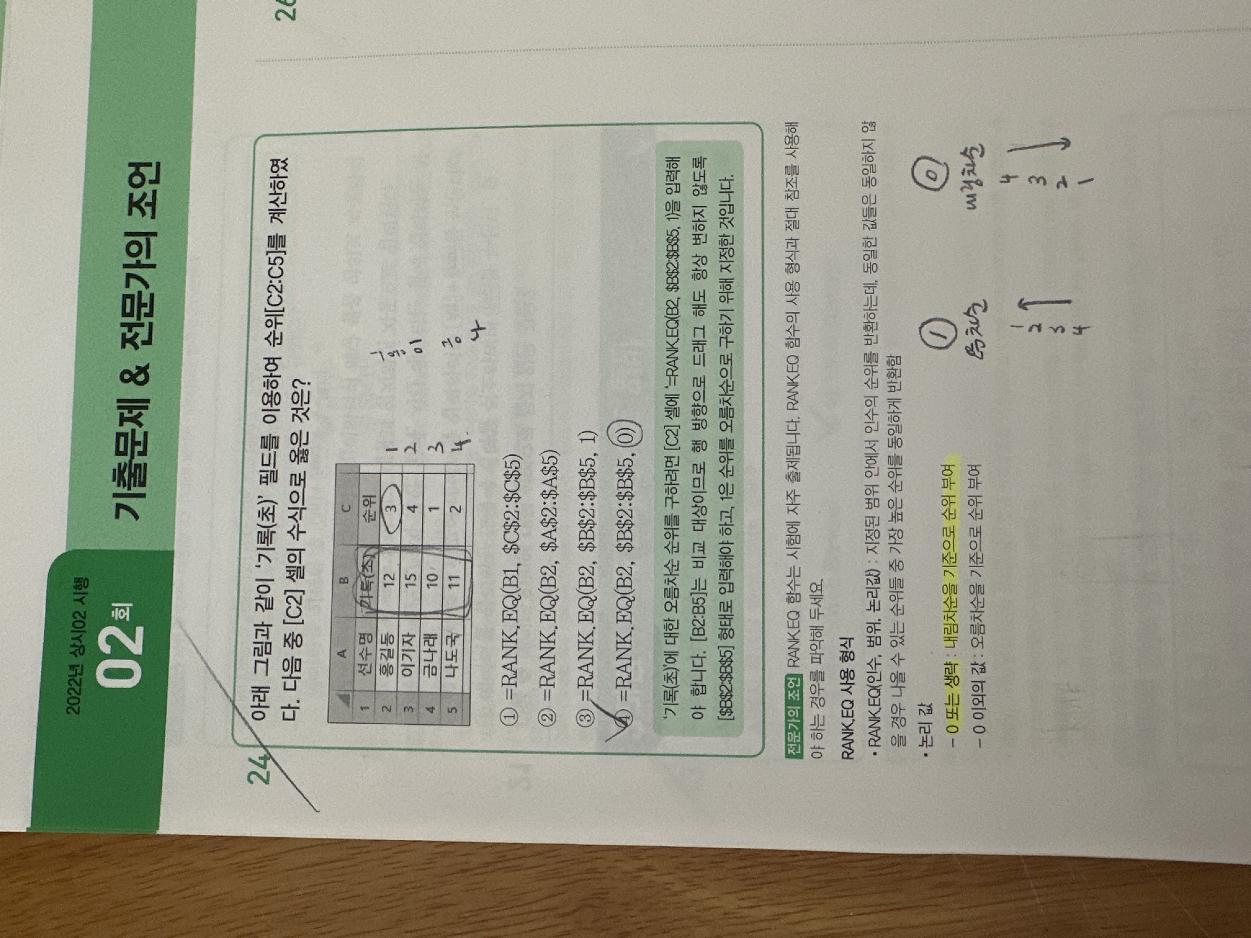 순위가 1등인 사람의 기록(초)를 보면 전체 기록(초) 중 값이 가장 작습니다. 가장 작은 값이 1등이고 가장 큰 값이 4등 즉 값이 점점 커질 수록 등수도 커지므로 오름차순으로 지정한 것입니다.