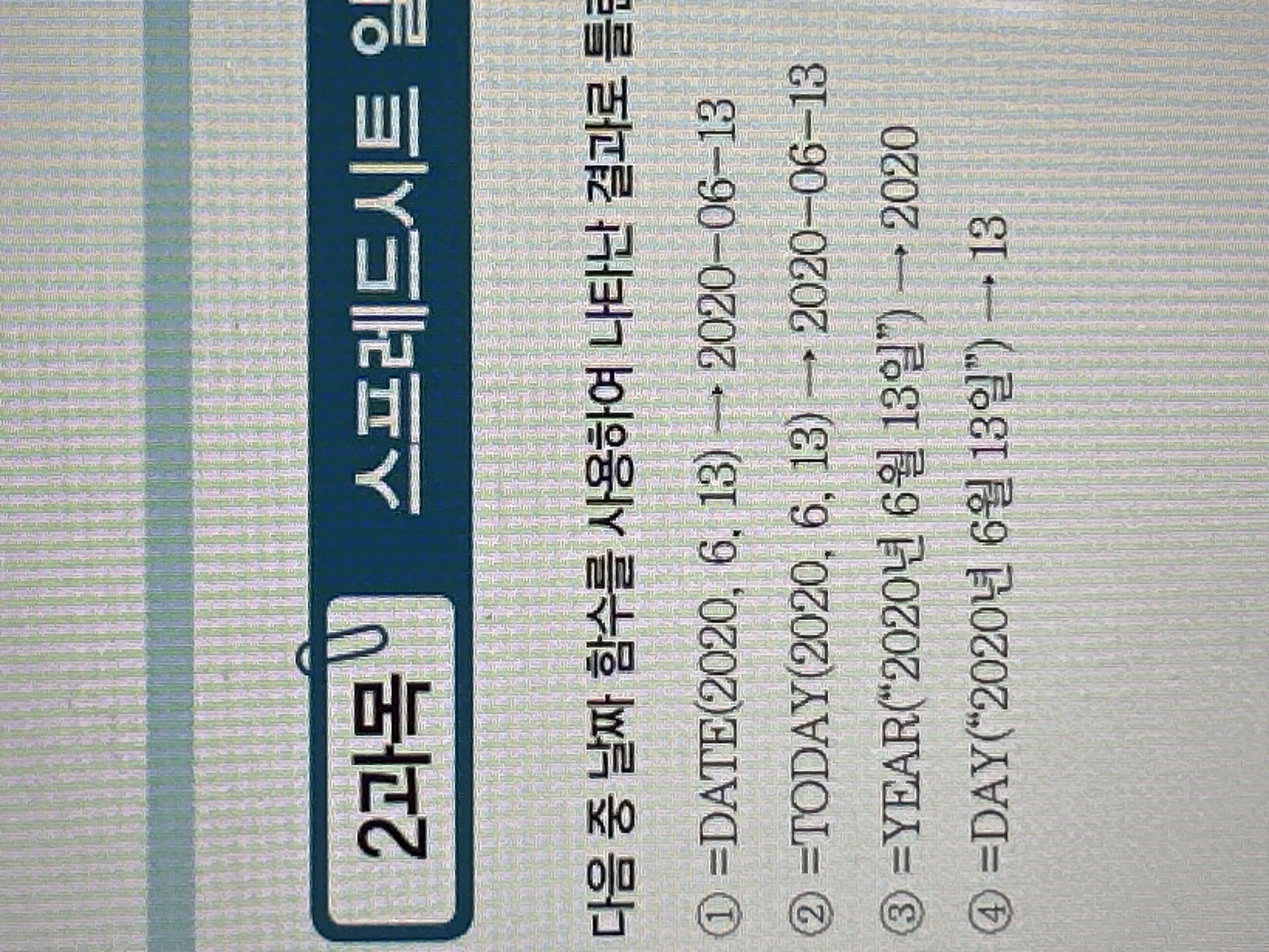 =DATE(2020,6,13)을 하면 날짜의 일련번호가 나타는거라고 적혀있는데 1번도 틀린거 아닌가요