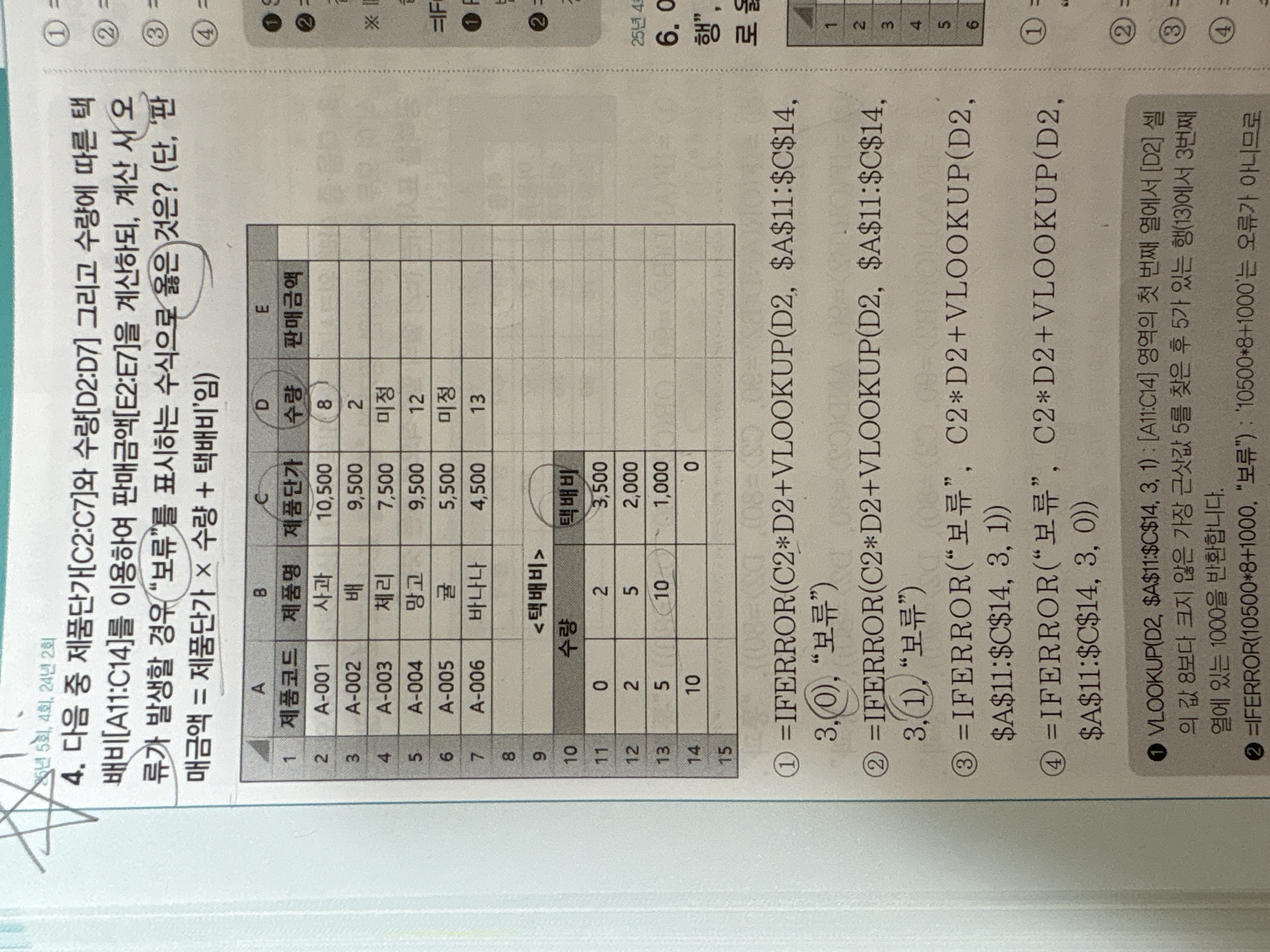 1-4번까지 보기에 vlookup 함수가 사용 됐는데,