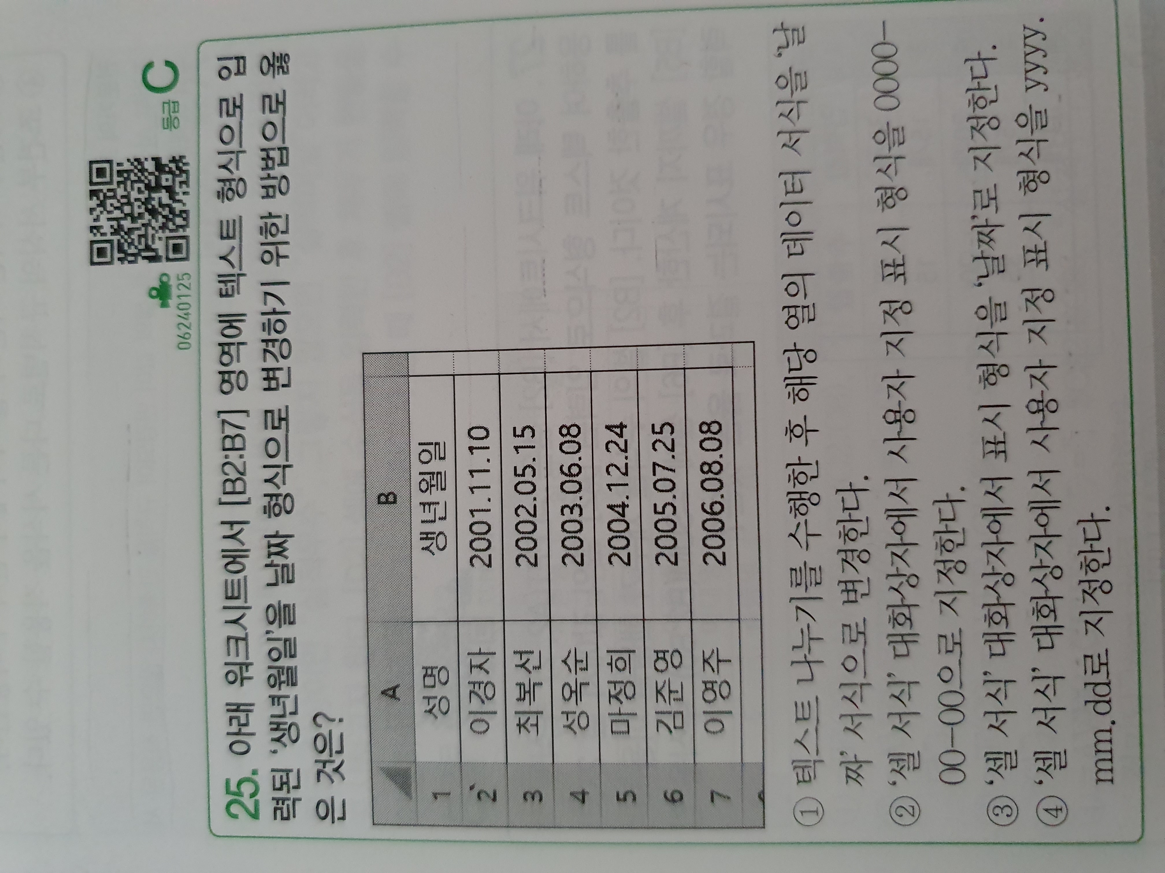 지금 문제에 나와 있는 생년월일은 왜 텍스트 형식이라 하나요?