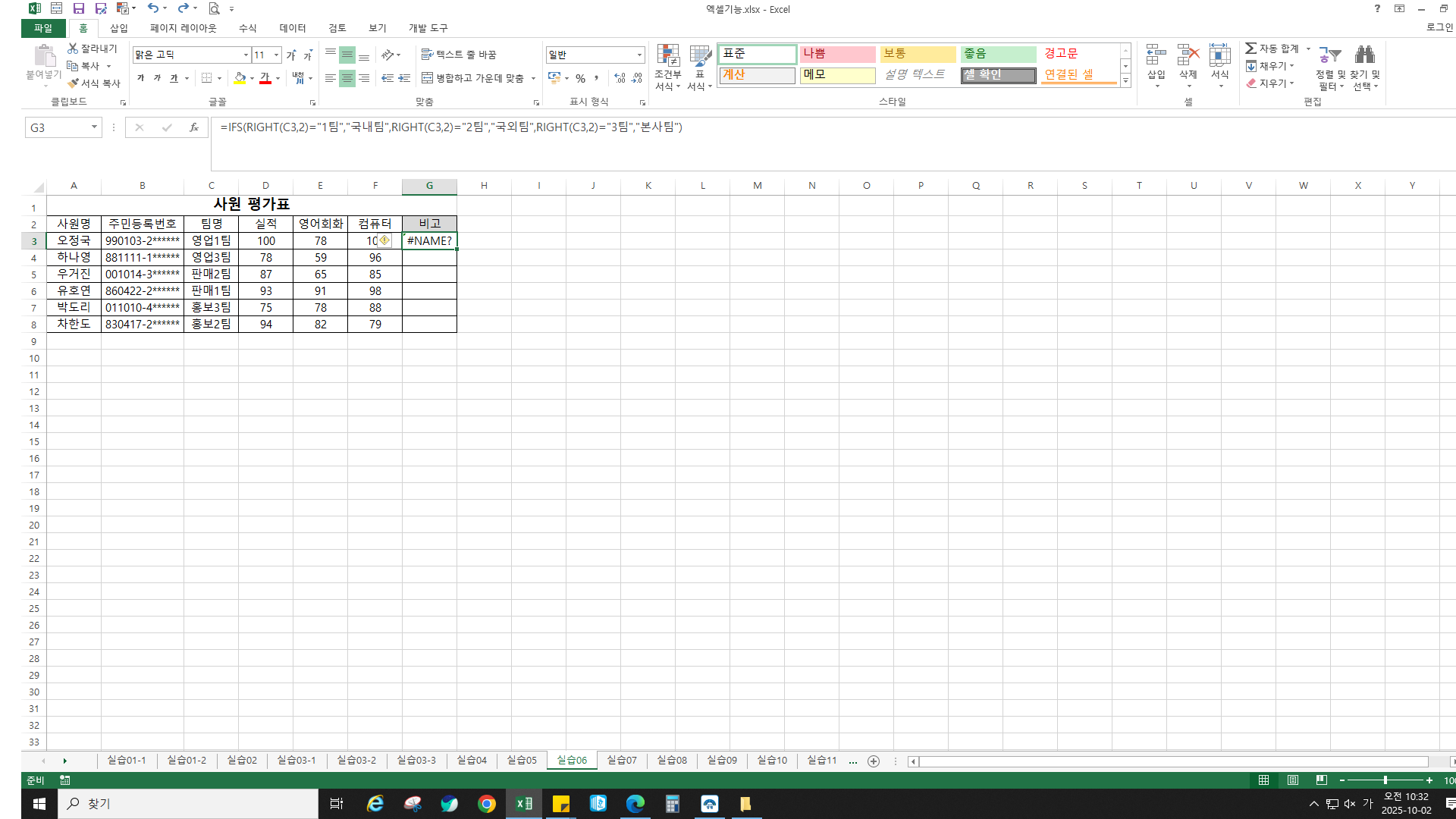 그림상으로는 잘못된 곳을 찾기가 어렵네요. 실습한 엑셀 파일을 올려주세요. 파일을 열어 직접 실습해야 오류 원인을 알 수 있습니다.