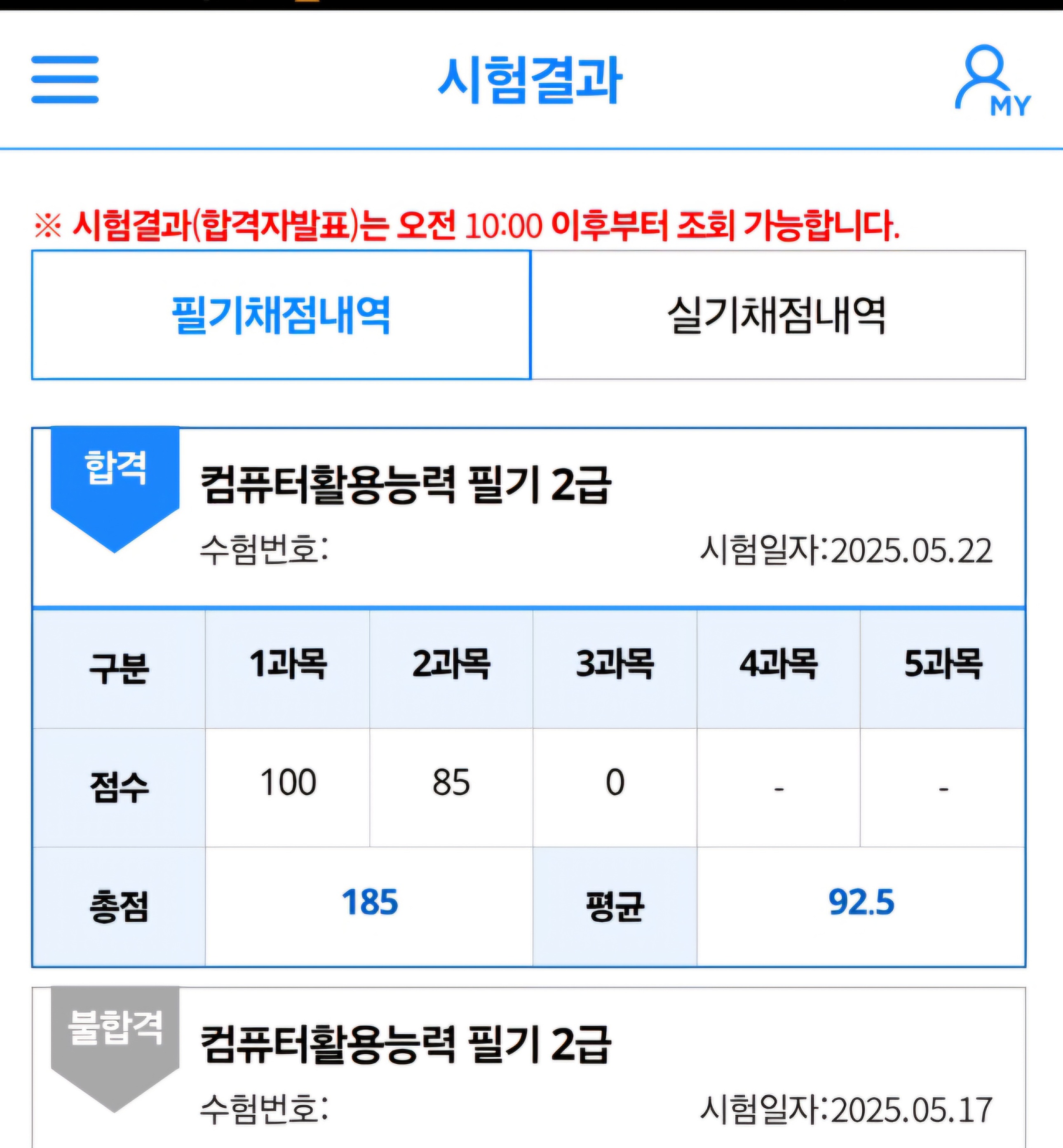 한번 떨어져 속상했는데 22일 시험후 23일 결과를 보니 저절로 웃음이 나는 점수였습니다.