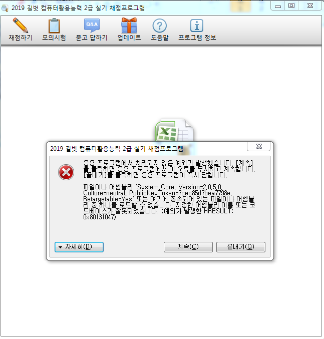 이렇게 오류가 뜨고 채점항 엑셀문서도 열리지 않네요