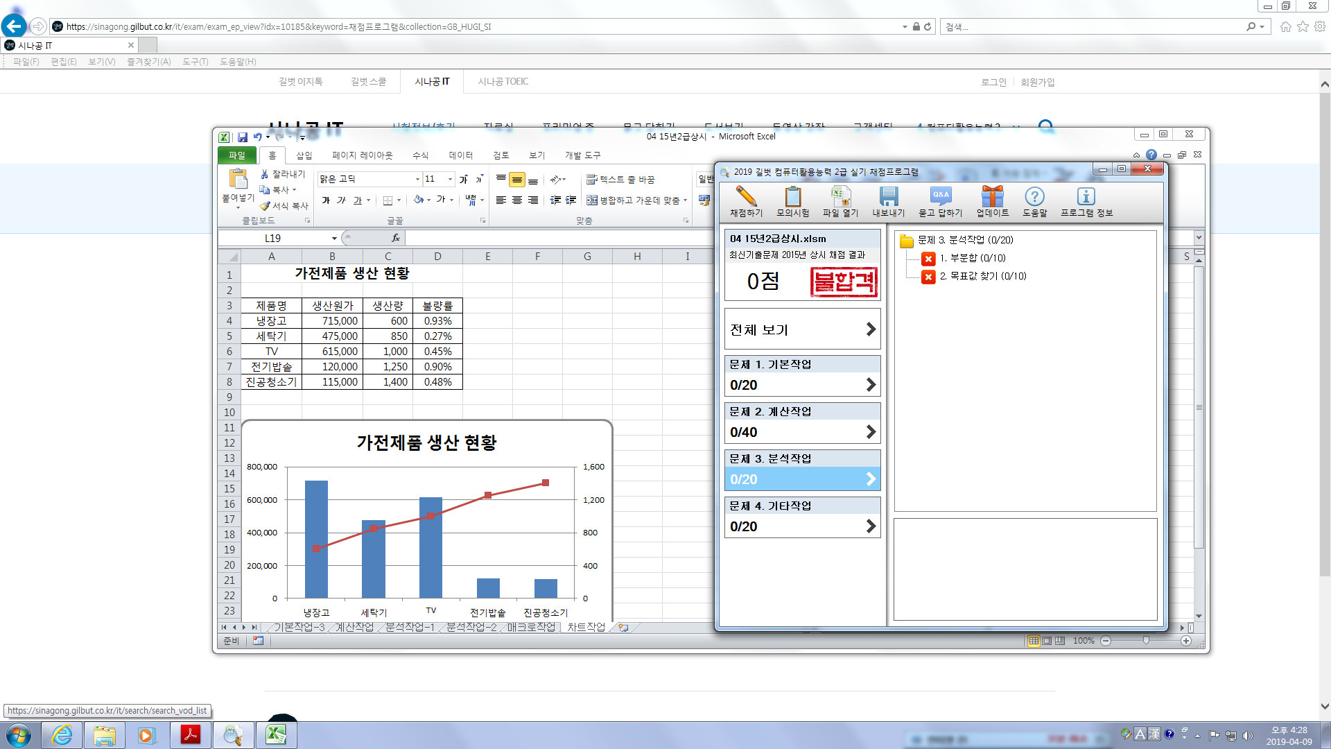 모의시험 기능을 사용하지 않고 작업한 파일을 끌어다 채점했는데 0점이 나올경우에는 파일 확인이 필요합니다.