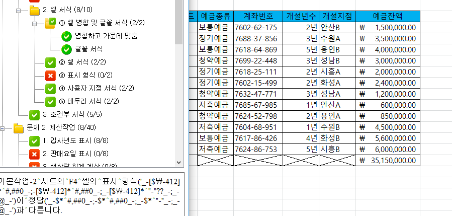 실제 시험에서는 범주 지정만 따로 없이 통화형식 지정만 나온다면