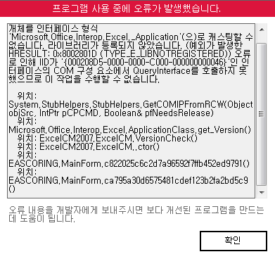 문의하신 오류는 오피스와 관련된 레지스트리가 깨져 발생합니다.