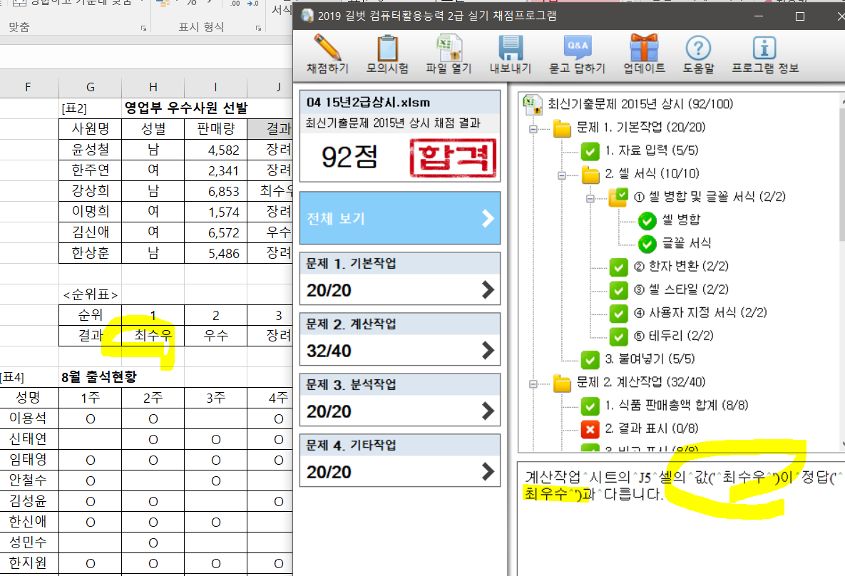 엑셀 파일의 문제인건가요 ? 문제지에서는 1등이 최우수라고 되어있는데