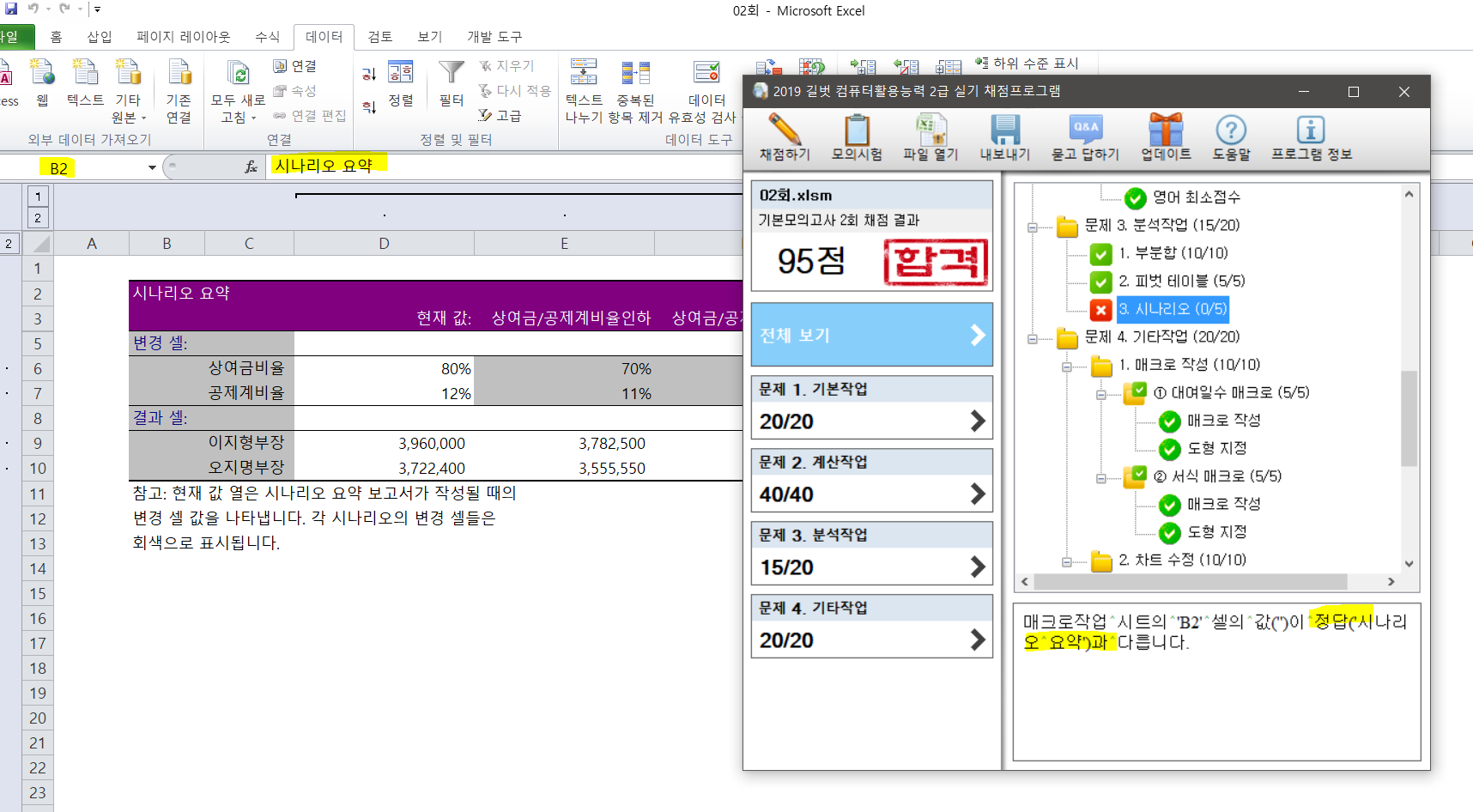 시나리오 b2셀 채점문제