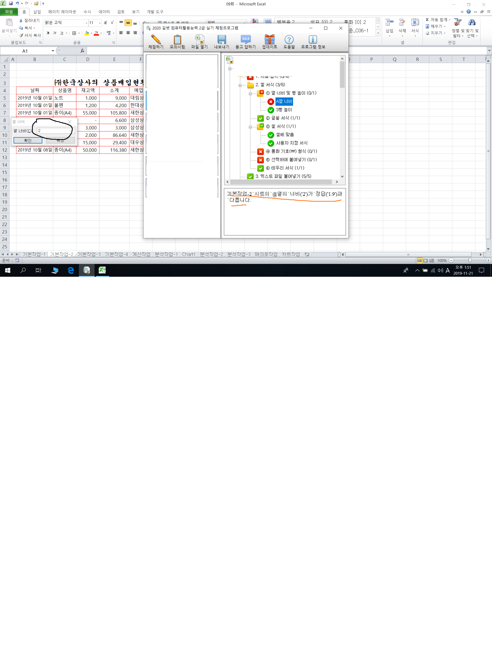 열너비 맞게 한거 같은데 왜 틀렸다고 하는거죠?
