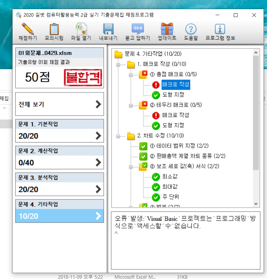* 파일 첨부하여 문의 남겨주시면 매크로 부분 채점 결과 안내드리겠습니다.