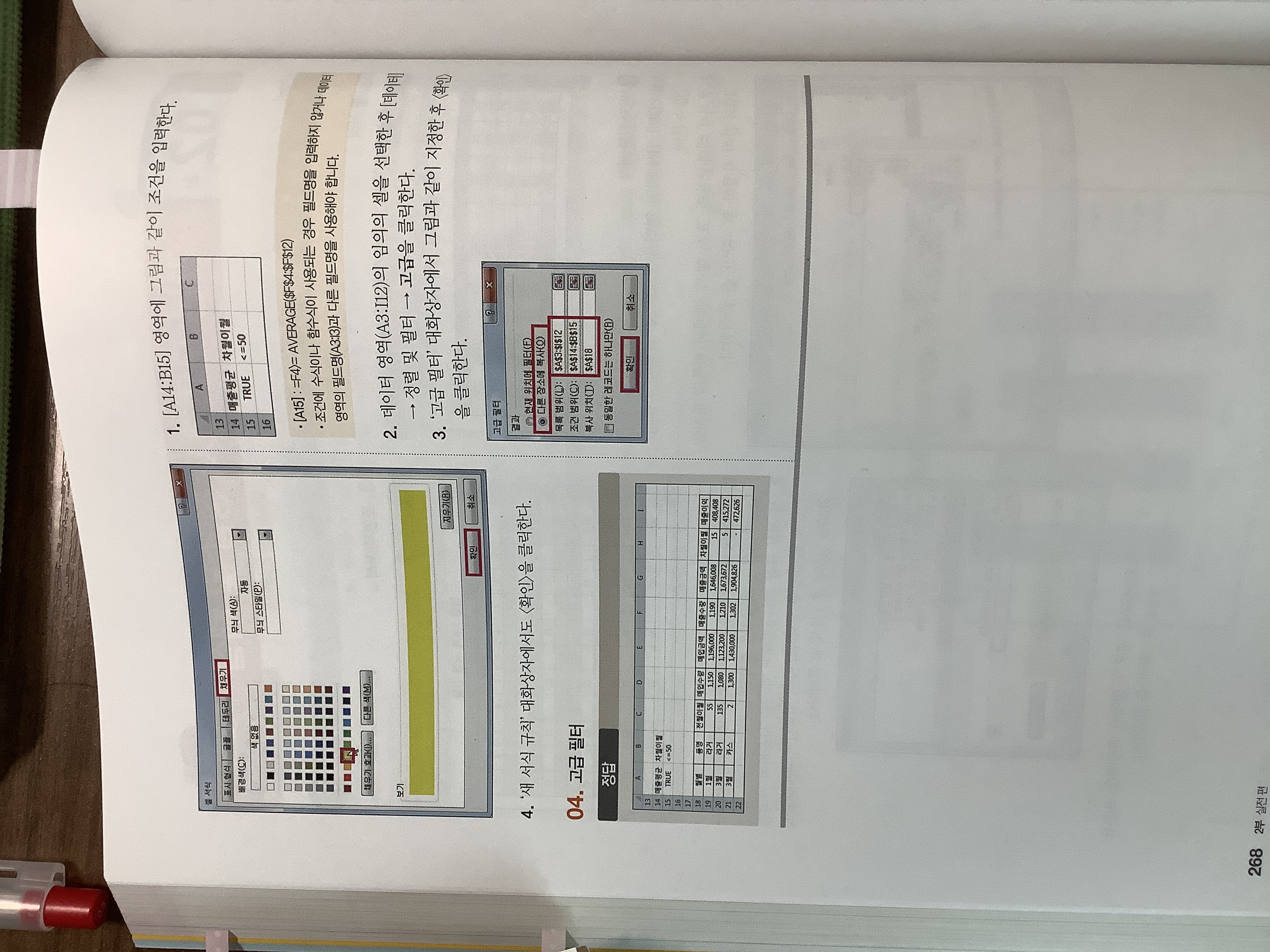 고급필터 1번해석에 매출평균조건이 왜 >=average($F$4:$F$12)가 아니라 true가 되는지 모르겠습니다..