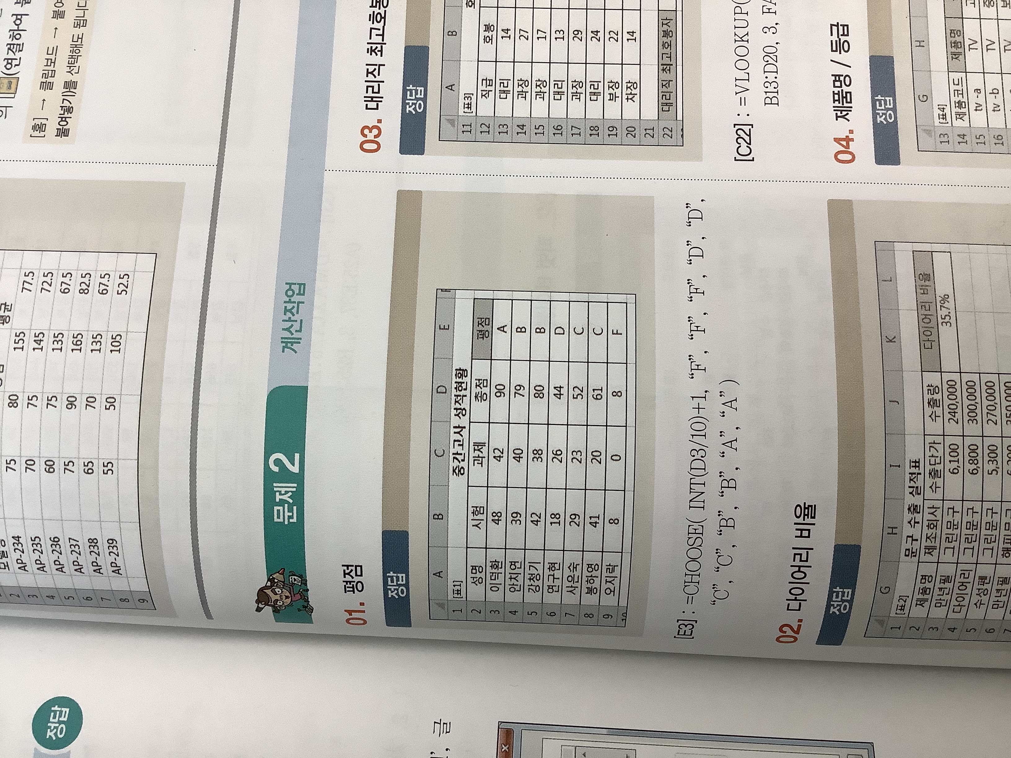 - +1 : 여기서 +1을 해주는 이유는 총점이 0~9일 경우 INT(D3/10)의 결과값가 0이 되고 그럼 CHOOSE 함수에 오류가 발생하므로 +1을 해주는 것입니다.