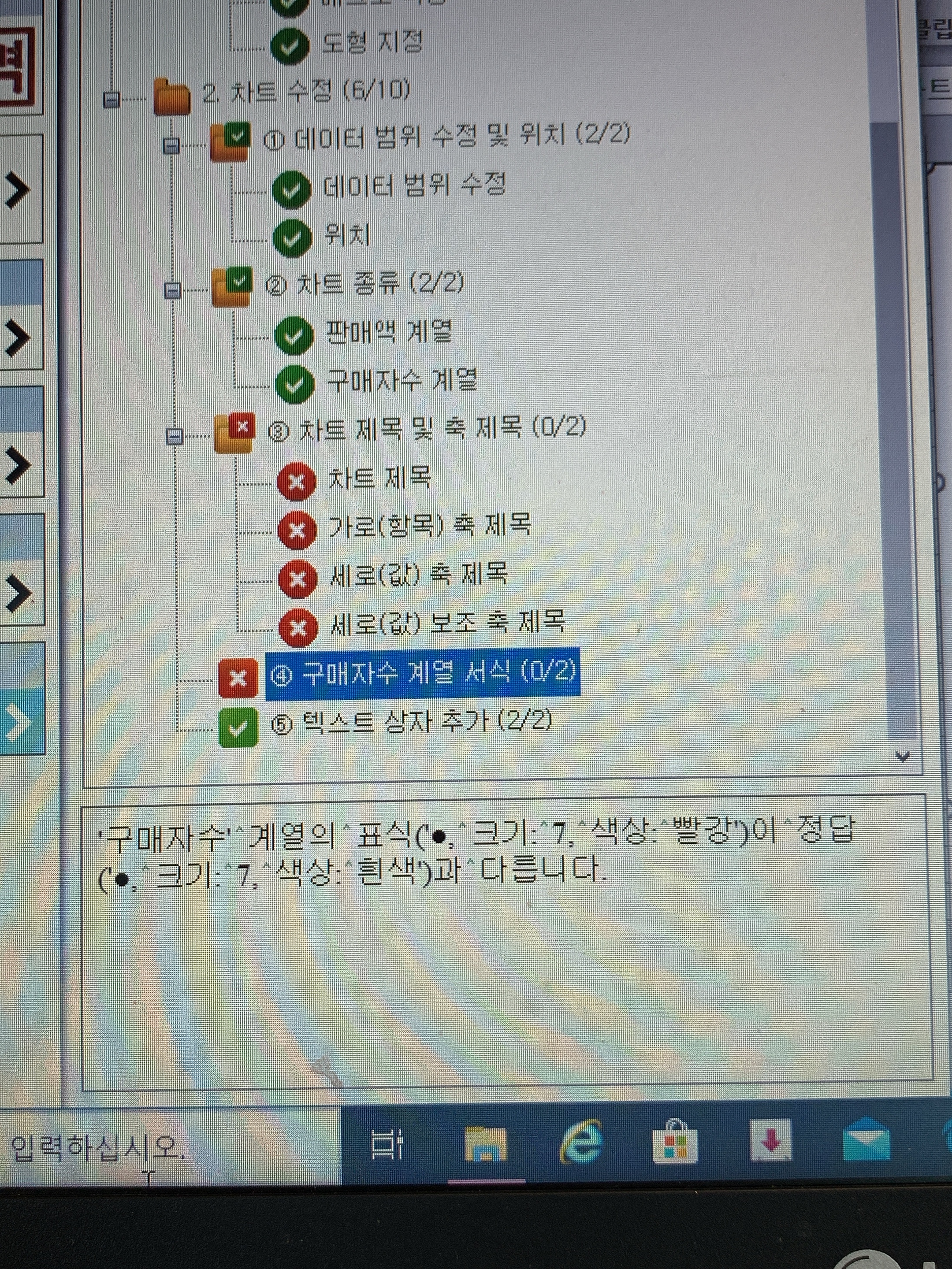 문제에 쓰여있는대로 풀었는데, 대체 왜 오답인지 모르겠습니다. 혹시 2010년 버전이 없어서 2016버전으로 대체해서 오답으로 판정되는건지.. 사진 상으로 보여드리니 왜 오답인지 말씀해주세요. 또, 축제목 같은 경우에 문제에는 굵게 설정하라는 말이 없는데, 사진 상으로는 굵게 설정되어 있습니다. 그럼 사진을 따라서 풀어야 하는건가요? 오로지 문제만 보고 풀었는데, 축제목을 굵게 설정하지 않았다는 이유로 오답이 설정되어 있어서 물어봅니다.