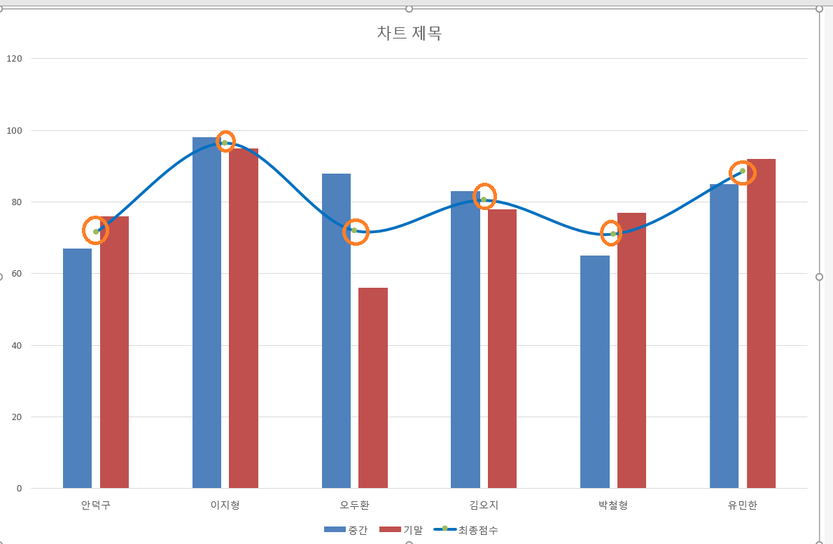 최종점수 계열은 표식이 있는 꺾은선형으로 지정하라는 말만 있습니다!