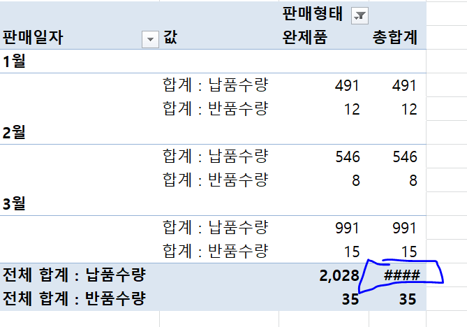열 너비가 좁아 값을 표시할 수 없는 것입니다. 해당 열의 너비를 넓혀주면 값이 제대로 표시됩니다.