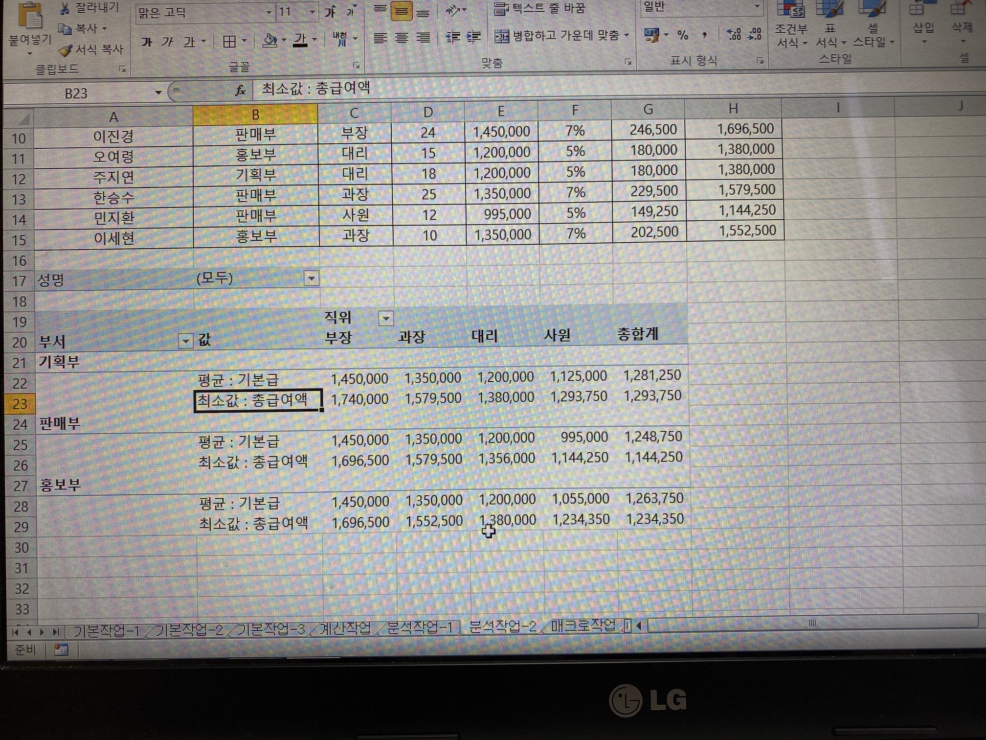 저는 부장 과장 대리 사원 순으로 나옵니다 뭐가 잘못된 걸까요?