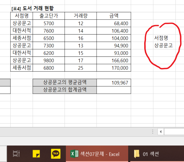 문제에 조건을 입력할 부분이 제시되지 않았다는 것은 이미 입력되어 있는 것을 이용해서 작성하라는 의미이므로 조건을 다른 영역에 임의로 입력해서 작성하면 안됩니다. 교재에 있는 수식 처럼 작성하셔야 합니다.