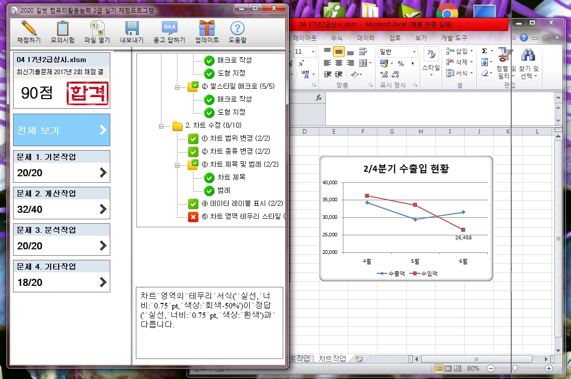 올려주신 파일을 채점해봤는데 저는 차트 부분에 감점사항이 없습니다. 채점 프로그램의 일시적인 오류였나 봅니다.