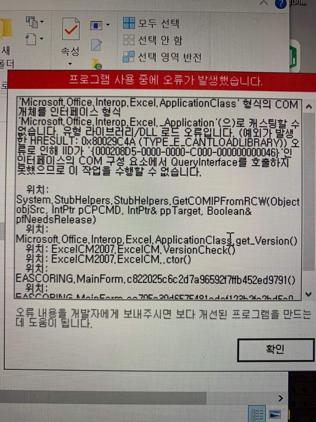오피스를 재설치한다면 실행 가능할 수 있습니다.