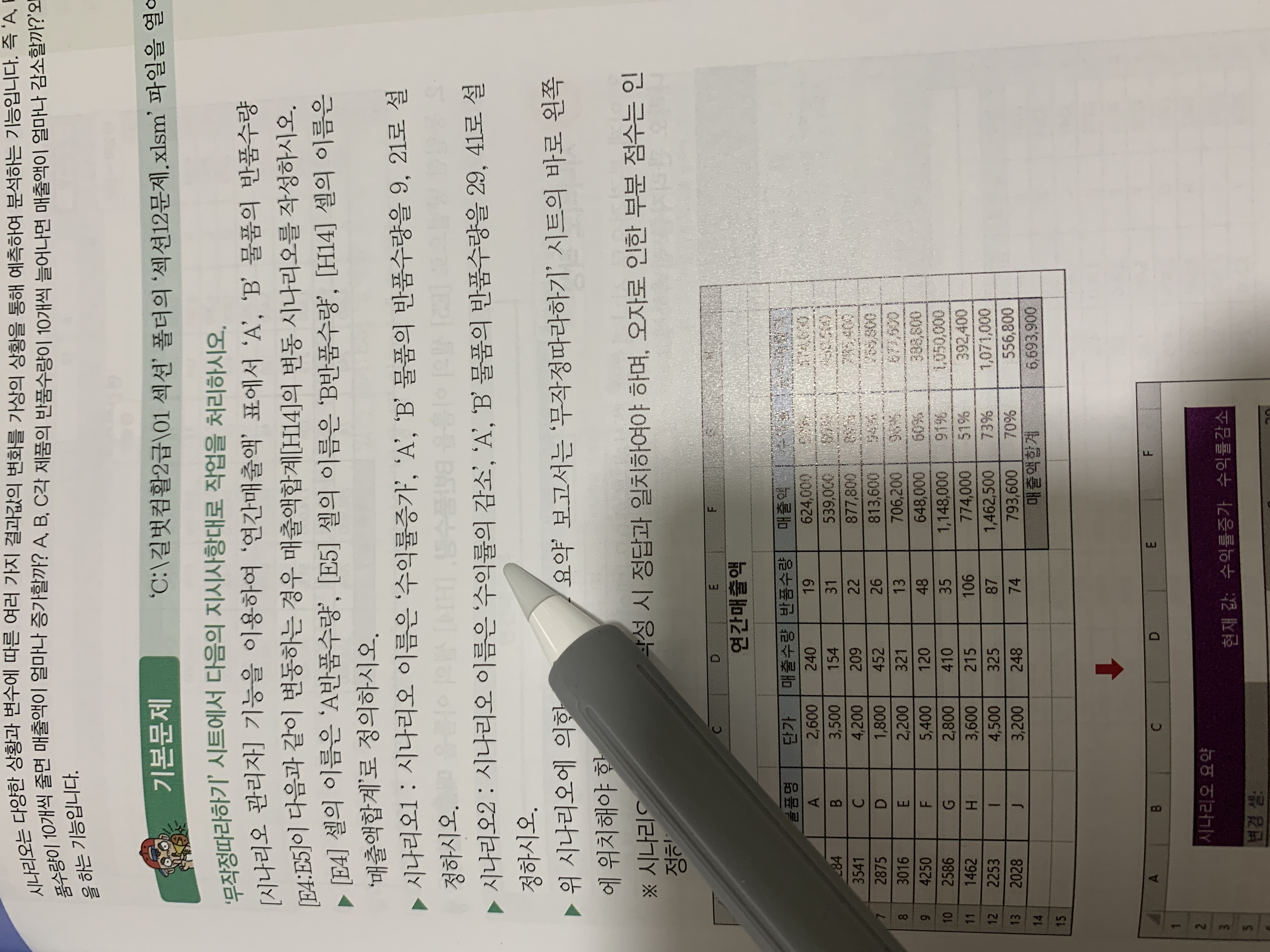 수정 전 : ▶ 시나리오2 : 시나리오 이름은 ‘수익률의 감소’, ‘A’, ‘B’ 물품의 반품수량을 ~
