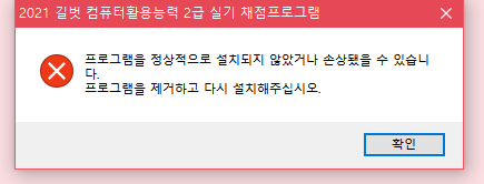 사용중이신 백신프로그램이 있다면 해당 백신프로그램을 종료한 다음 채점프로그램을 재설치 해보시길 바랍니다.