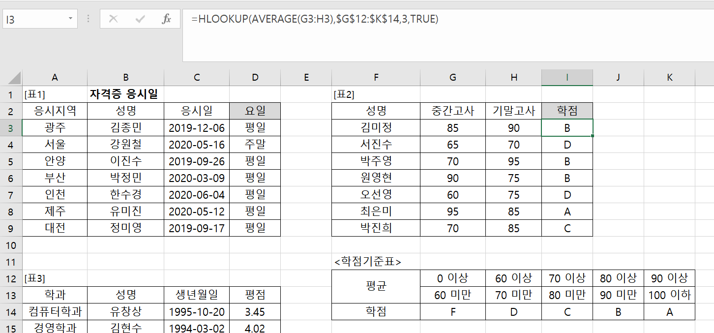 hlookup함수에서 참조할 범위를 지정할때 점수와 같이 ~이상~미만인 경우 왜 전체 범위를 지정해야하는지 궁금합니다!