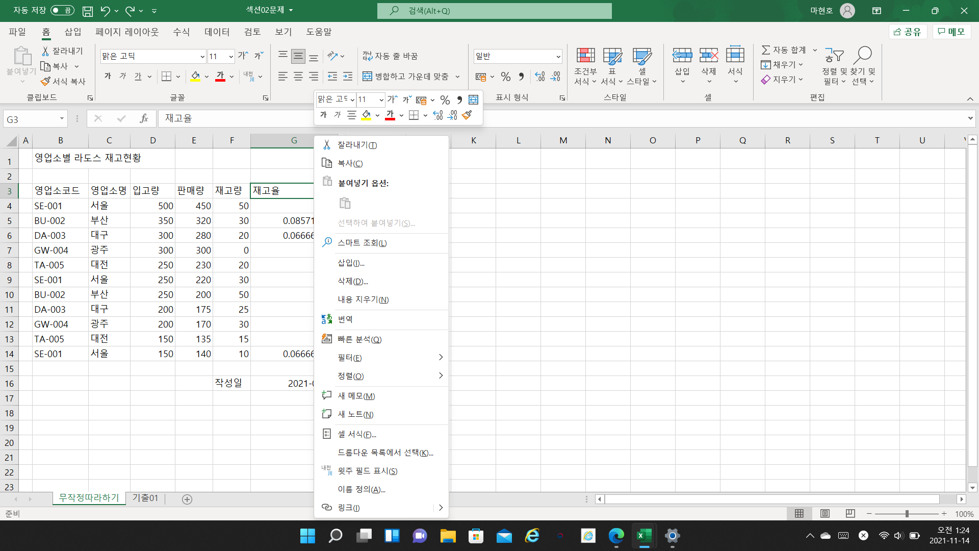 이게 같은 엑셀 2016버전인데 책이랑 다르게 화면이 떠요