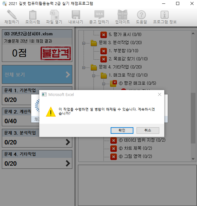 정확한 오류 원인을 알수가 없네요. 혹시 모르니 오피스 프로그램 전체와 채점 프로그램을 모두 삭제한 후 다시 설치해 보시기 바랍니다.