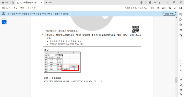 시나공 컴활2급 함수 연습문제인데요